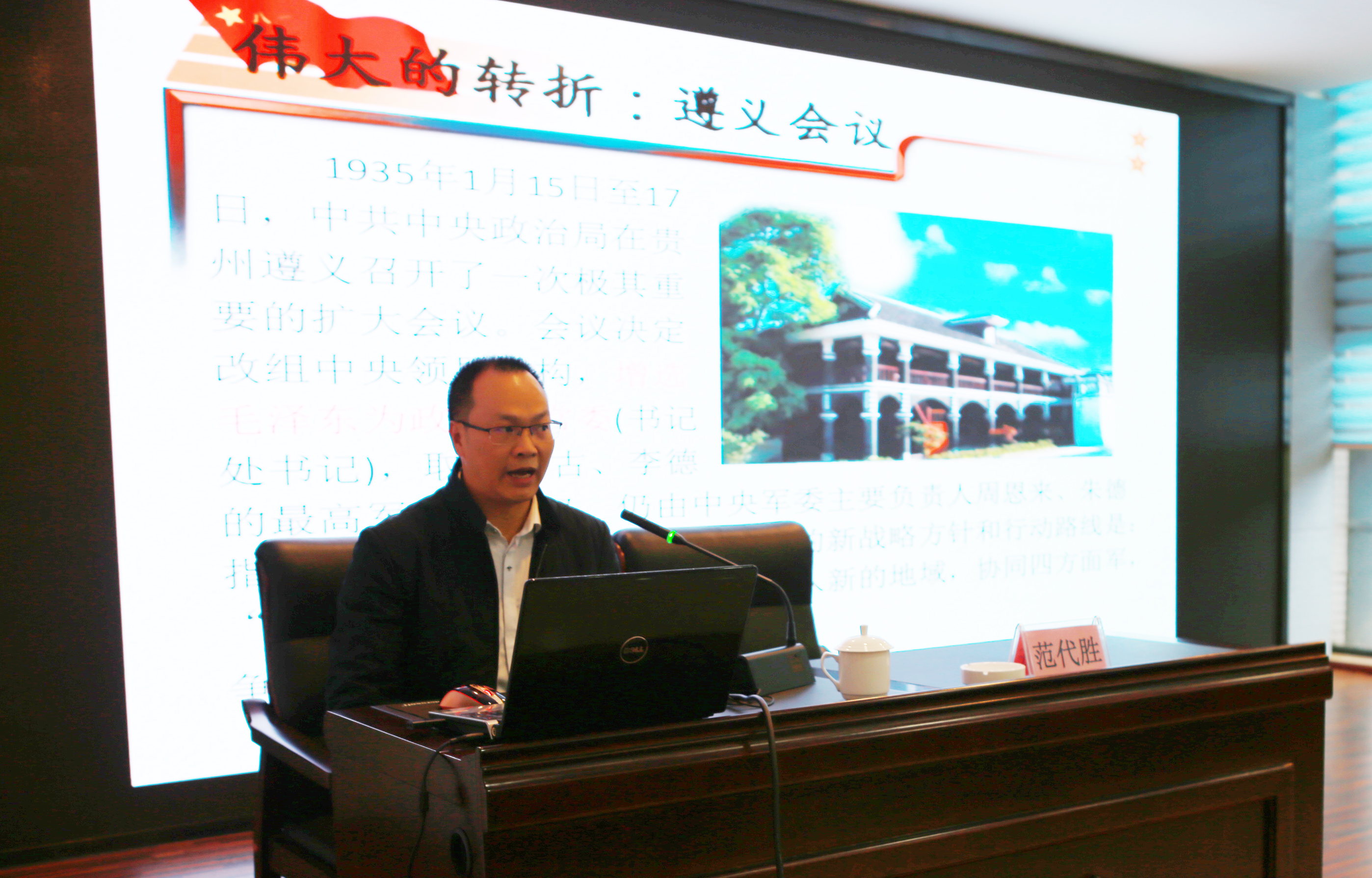 范代勝老師分別從四渡赤水戰(zhàn)役概況、毛澤東的得意之處、四渡赤水在古藺、四渡赤水的啟示方面深入淺出講述了紅軍四渡赤水的前因后果。為執(zhí)行遵義會(huì)議北渡長(zhǎng)江與紅四方面軍會(huì)合的決定,1935年1月19日,中央紅軍離開(kāi)遵義北上,由此有了紅軍長(zhǎng)征驚心動(dòng)魄的四渡赤水經(jīng)典之戰(zhàn)。四渡赤水,體現(xiàn)了毛澤東機(jī)動(dòng)靈活的戰(zhàn)略戰(zhàn)術(shù)原則,是以少勝多、變被動(dòng)為主動(dòng)的運(yùn)動(dòng)戰(zhàn)典范,是紅軍長(zhǎng)征中最驚心動(dòng)魄、最精彩的軍事行動(dòng),是毛澤東軍事生涯中的“得意之筆”。