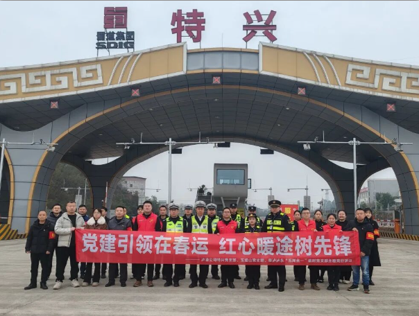 為深入貫徹落實(shí)春運(yùn)期間道路暢通保障工作部署,扎實(shí)推進(jìn)2026年高速公路春運(yùn)安全管理與服務(wù)保障各項(xiàng)任務(wù)落地見效,全力為廣大群眾新春返鄉(xiāng)、出行營(yíng)造安全、暢通、便捷、溫馨的道路交通環(huán)境,2月2日(春運(yùn)首日),瀘渝公司榮瀘瀘永“五崗合一”聯(lián)合臨時(shí)黨支部、特興黨支部及玉蟾山黨支部積極響應(yīng)號(hào)召,組織黨員志愿者在特興收費(fèi)站外廣場(chǎng)聯(lián)合舉行“黨建引領(lǐng)在春運(yùn) 紅心暖途樹先鋒”春運(yùn)志愿服務(wù)活動(dòng)啟動(dòng)儀式,正式拉開為期40天的春運(yùn)志愿服務(wù)序幕。