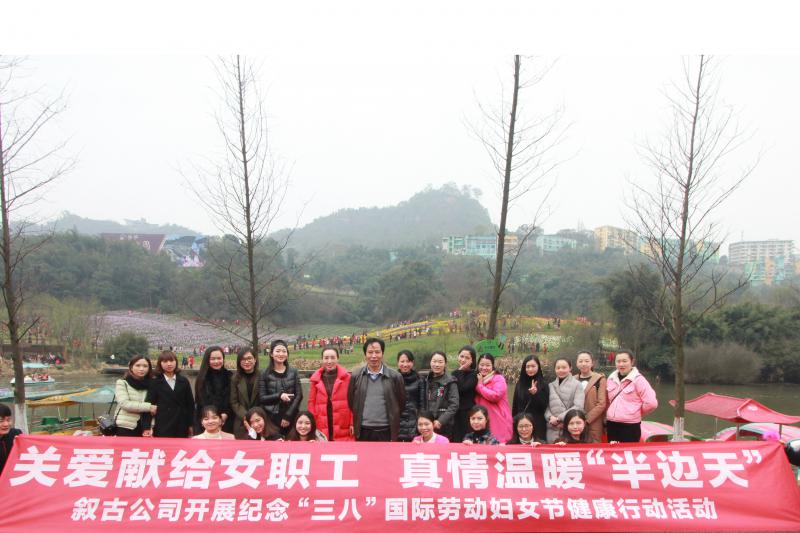 陽春三月,桃花正開。在這個陽光明媚的日子里,為展現公司女職工和諧健康的時代風采,引導和激勵廣大女職工創先爭優、建功立業,促進公司的健康穩步發展。3月8日,公司工會組織31位女職工到瀘州納溪花田酒地開展主題為“關愛獻給女職工,真情溫暖半邊天”紀念“三八”國際勞動婦女節健康行動活動。公司工會主席、紀委書記李興明,黨群辦、辦公室、運營處負責人參加了此次活動。