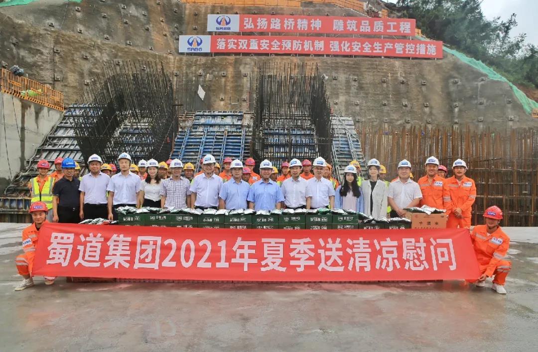 炎炎夏日送清涼,真情慰問暖人心。6月28-29日,蜀道集團到敘古、川黔、敘威高速各個站點開展2021年夏季送清涼慰問。集團副總經理李永林攜群工部、經管部、安保部和建管部相關工作人員一行到營山收費站、古藺西收費站、水落河、朱家山隧道出口、赤水河紅軍大橋等一線單位和施工現場,看望慰問一線職工和施工人員,并向大家送上一份夏日清涼和組織的深切關懷。公司黨委書記、董事長劉小波等在家領導陪同慰問。