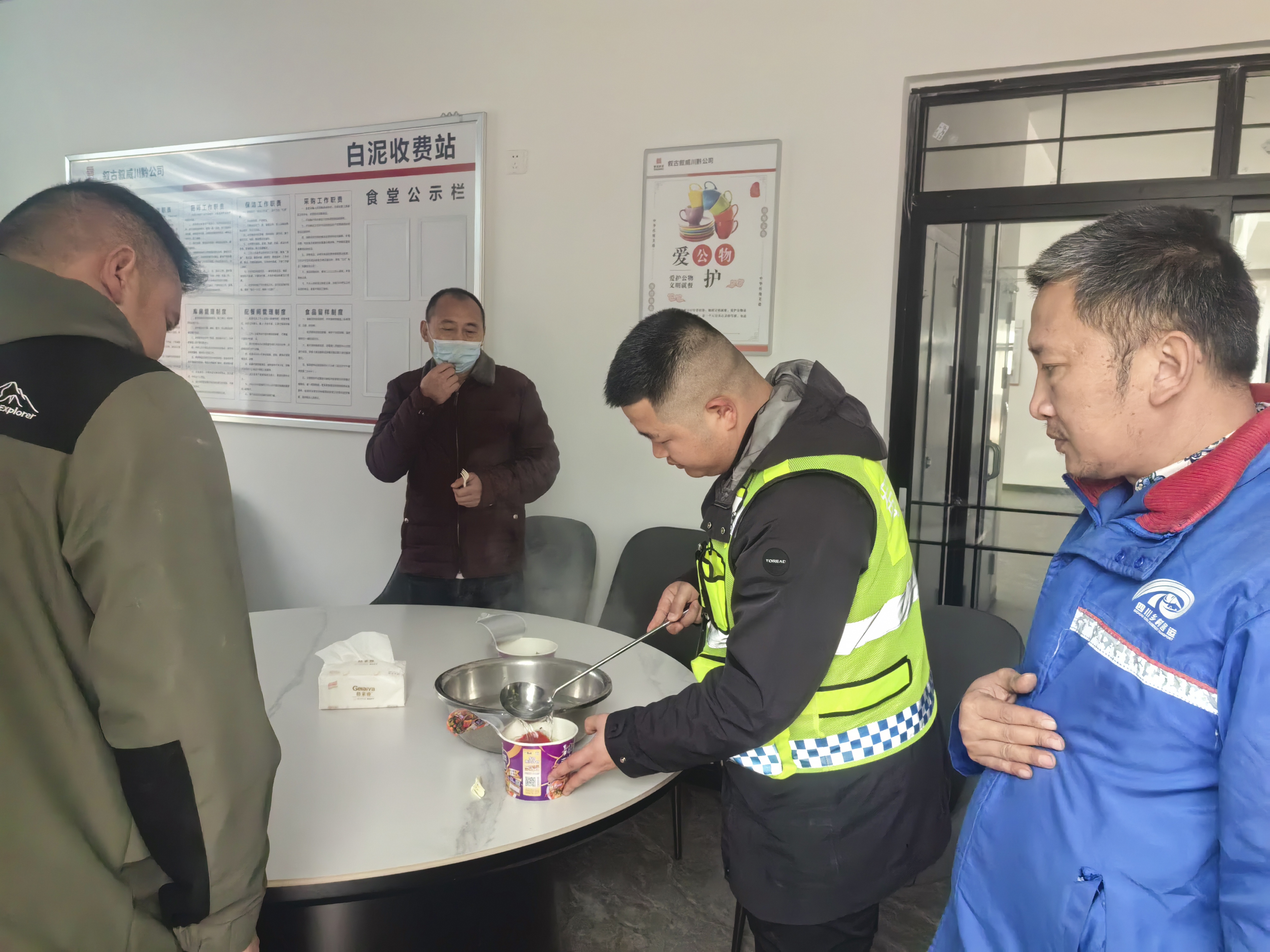 因路途遙遠,車主比較勞累,白泥收費站秉承“服務人民、助人為樂”的雷鋒精神,引導車主進入收費站站房休息區休息,并提供熱水、泡面等,安撫車主焦慮情緒,耐心為車主解答問題,幫助車主聯系貨主、規劃送貨路線,以實際行動為車主排憂解難。最終,幫助車主聯系到貨主并將貨物送達。