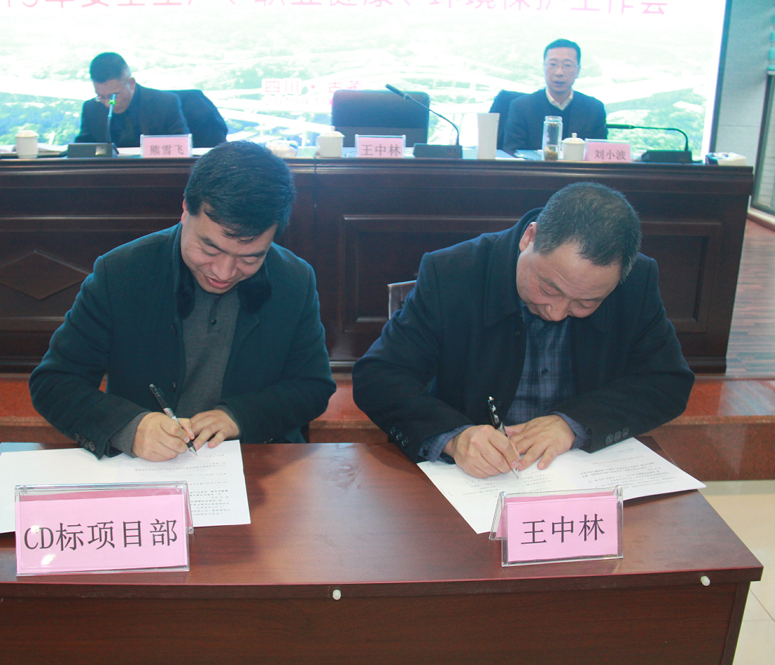 會上,公司黨委書記、董事長王中林分別與施工單位、監理單位簽訂了《敘古公司2019年度安全生產、職業健康、環境保護目標責任書》。