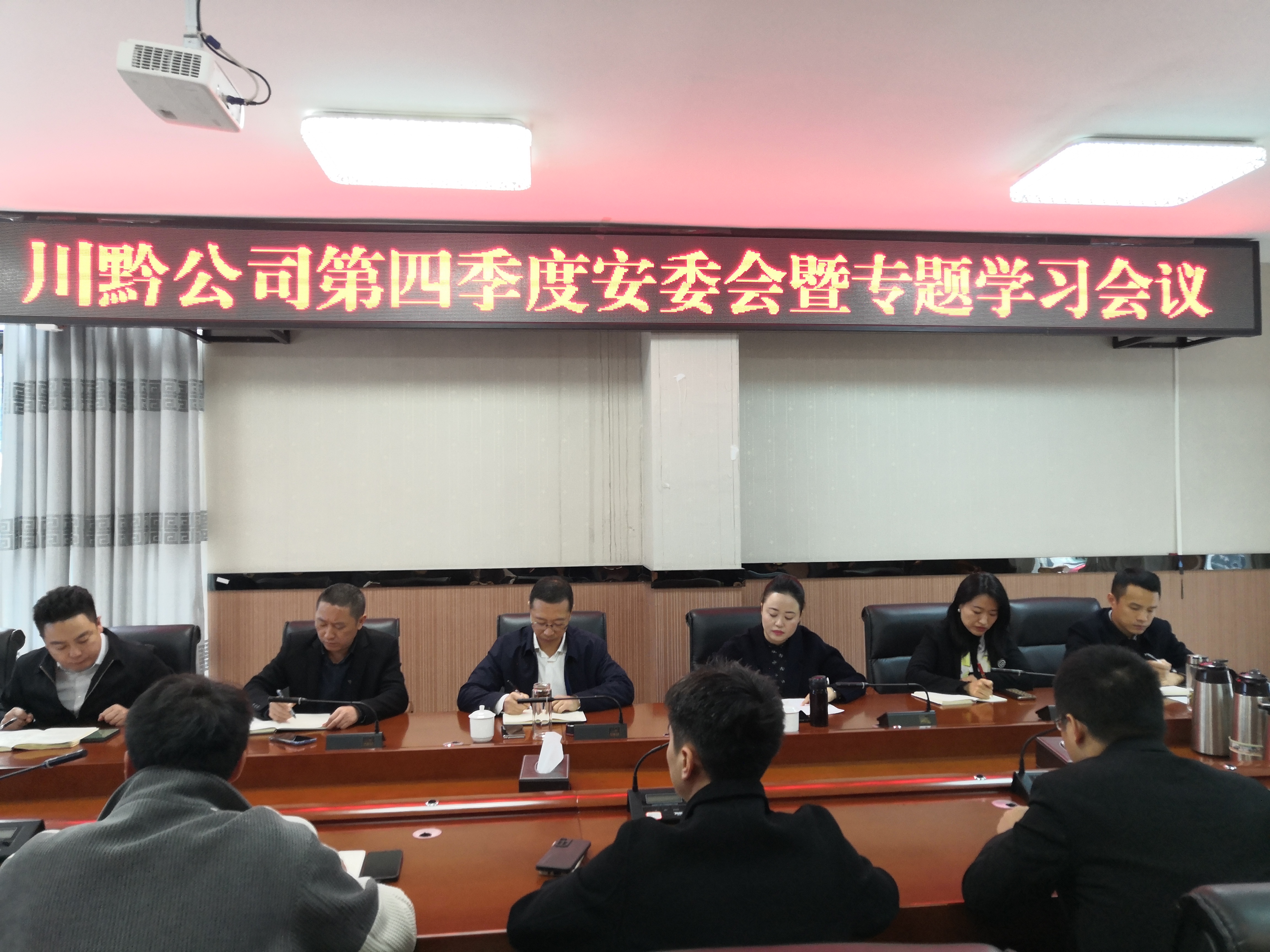11月16日,川黔公司董事長劉小波在公司一樓(小)會議室主持召開公司第四季度安委會暨專題學習會議,公司領導班子成員、安委會成員參加會議。