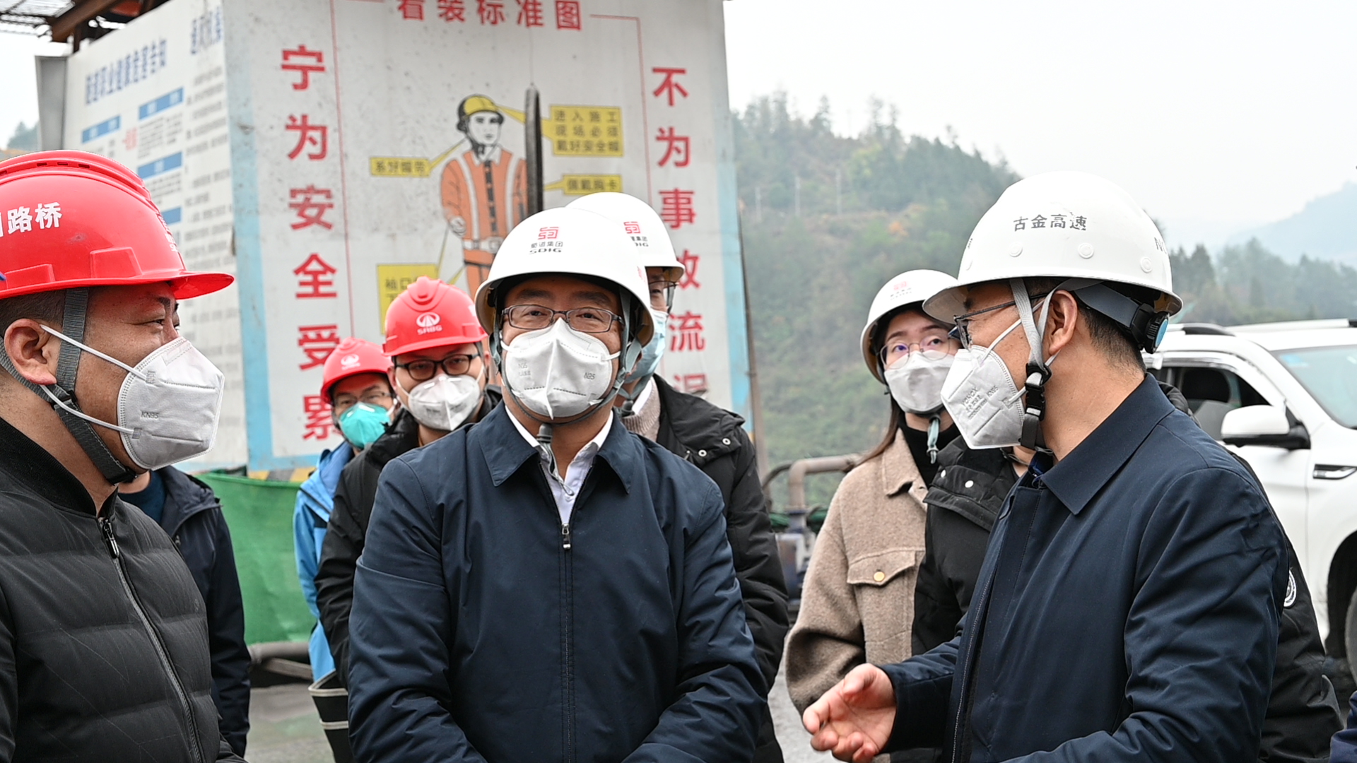 12月7日,蜀道高速集團黨委委員、副總經理羊勇帶隊到古金高速開展2022年度建設管理綜合檢查,川黔公司董事長劉小波,副總經理、總工程師熊雪飛陪同檢查。