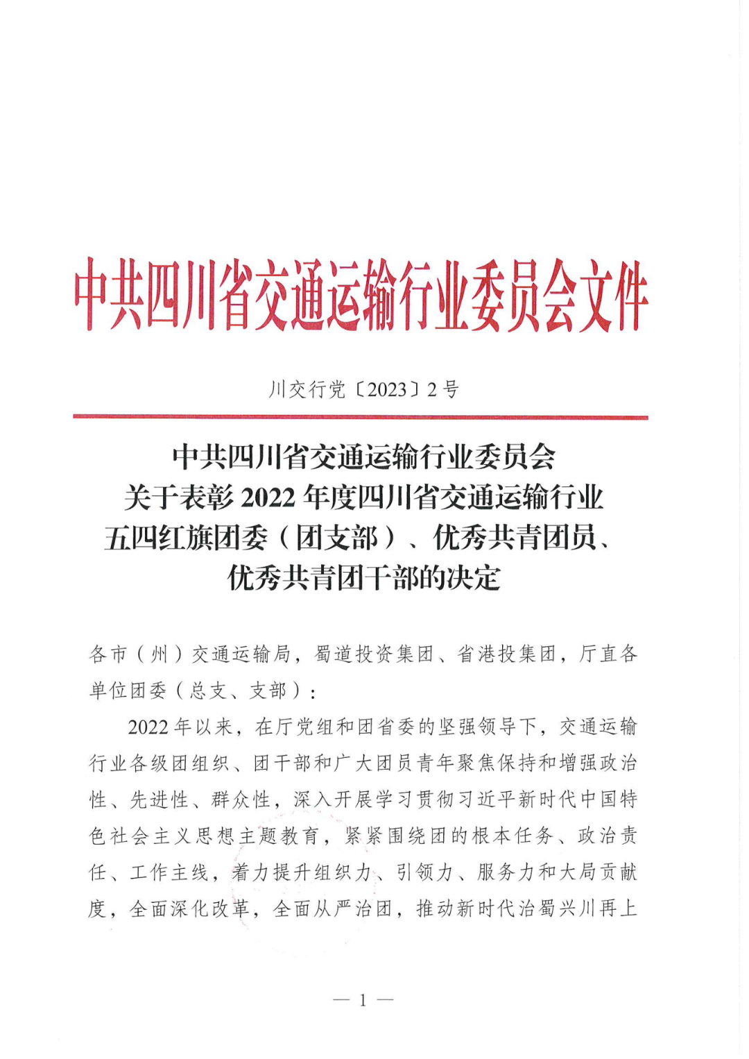 為表彰先進、樹立典型,近日,四川省交通運輸行業黨委發布了關于表彰2022年度四川省交通運輸行業五四紅旗團委(團支部)、優秀共青團員、優秀共青團干部的決定,敘古公司團委書記、黨務工作部(人力資源部)副部長李青榮獲優秀共青團干部榮譽稱號。