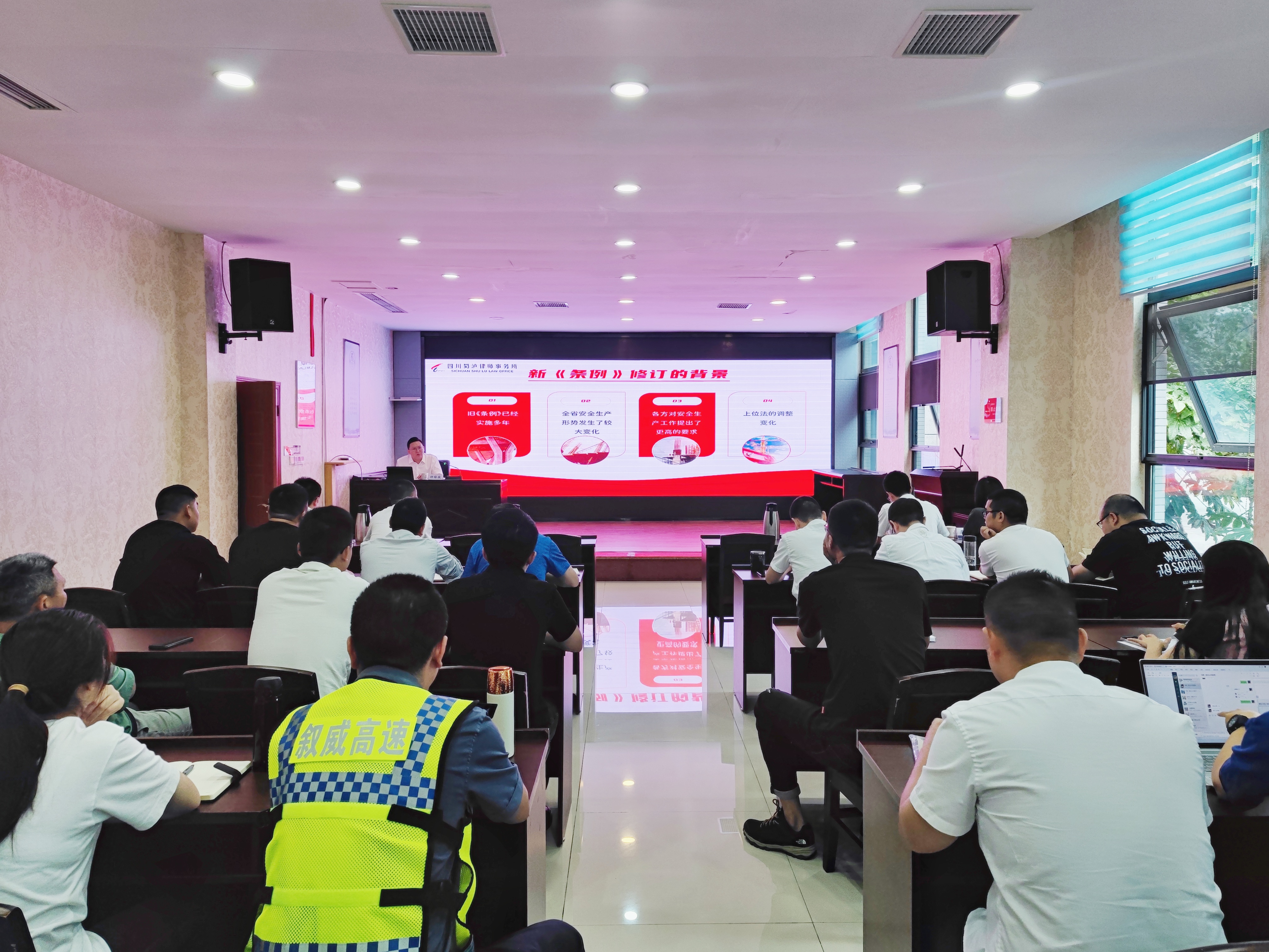 本次培訓(xùn)邀請四川蜀瀘律師事務(wù)所專職律師鐘鎵駿對新修訂的《四川省安全生產(chǎn)條例》進行解讀。鐘鎵駿從《四川省安全生產(chǎn)條例》的修訂的背景與意義、新舊兩版《條例》的對比入手,對《條例》各章節(jié)進行深入解讀。培訓(xùn)中,鐘鎵駿結(jié)合隧道爆炸、在建橋梁垮塌等多個事故案例,重點講解了新《條例》對生產(chǎn)經(jīng)營單位的要求、對從業(yè)人員的關(guān)懷保障以及法律責(zé)任的規(guī)定,對公司需要注意的事項提出建議。