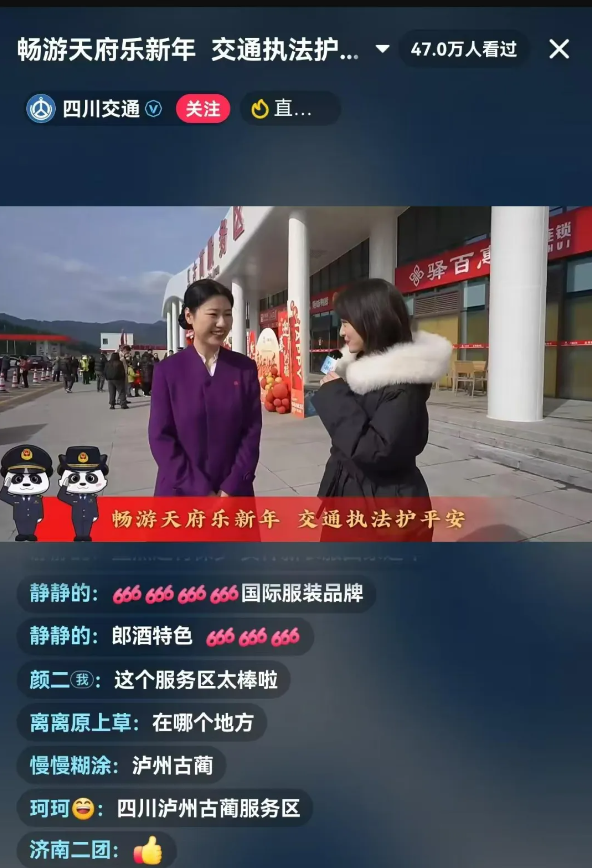 1月26日14:30,在“四川交通”抖音號直播間,大家跟隨鏡頭走進了G7512筑蓉高速(古金段)古藺服務區。春運春節期間,瀘渝公司圍繞高速公路便捷出行、保通保暢、優質服務、安全生產等重點任務,致力打造“便捷春運、順暢春運、溫馨春運、安康春運”,全力做好公眾出行服務保障,為乘客提供優質服務,展現瀘渝公司的良好形象。