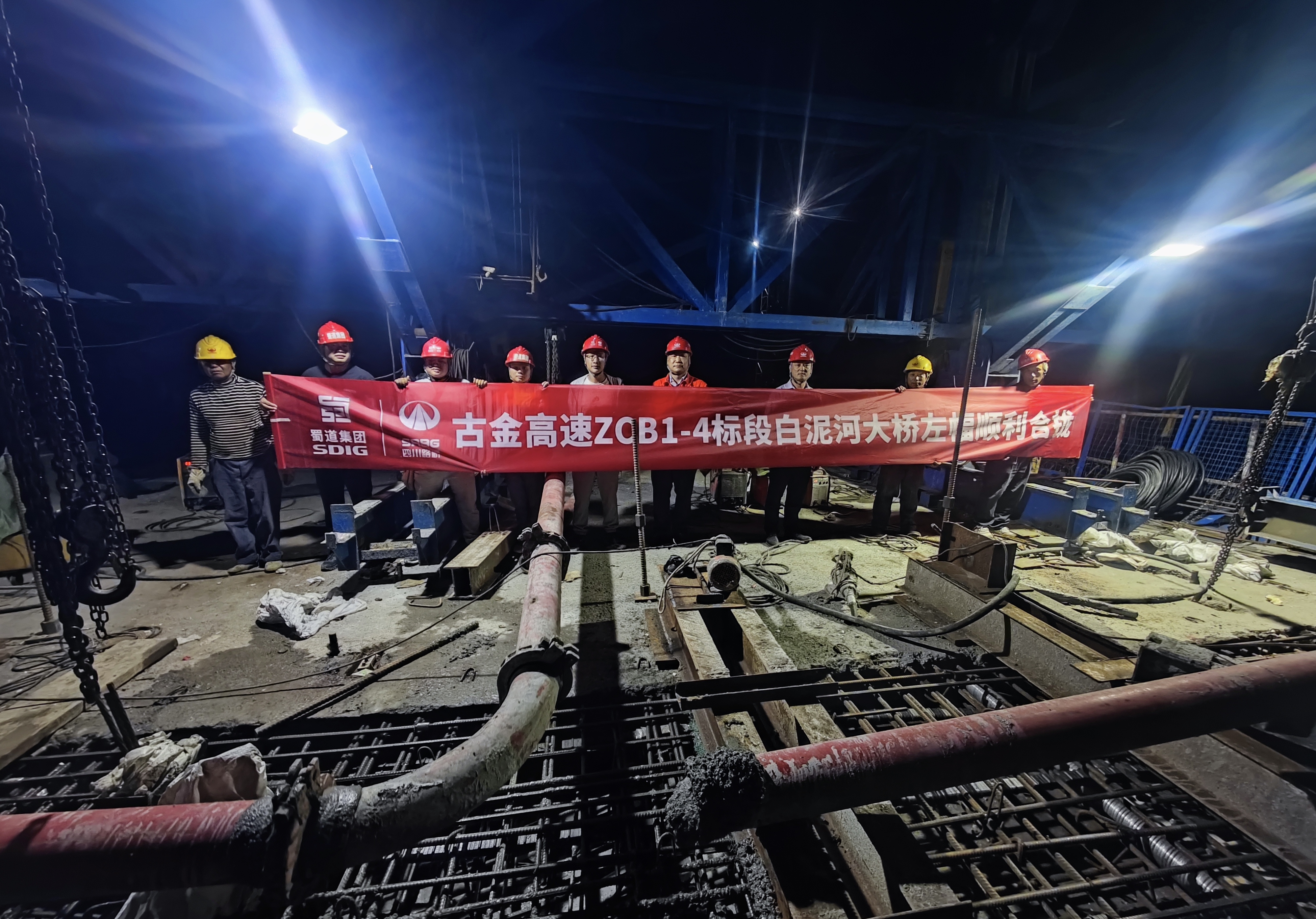 7月15日凌晨,伴隨著白泥河峽谷夜空中星星點點的燈火,古金高速白泥河大橋左線合攏段順利澆筑。